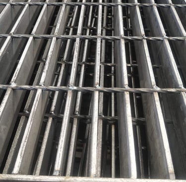 Structural Strength: Composed of flat bar bearing bars (25mm–50mm high, 2.5mm–5mm thick) welded to perpendicular cross bars (typically 5mm×5mm or 6mm×6mm), the grating delivers exceptional stability for both pedestrian traffic and light equipment. Bearing bar pitches of 30mm, 40mm, or 100mm (with custom options like 30mm×50mm or 33mm×100mm) ensure consistent load distribution.