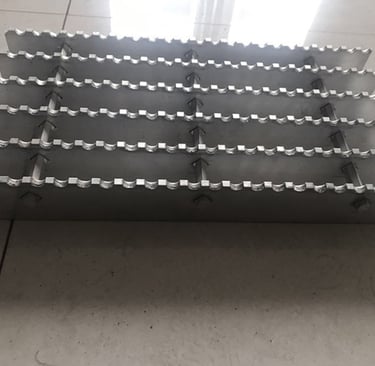 Structural Integrity: Composed of serrated bearing bars (25–65mm thick) welded or press-locked to perpendicular cross bars (typically 8x8mm), the grating delivers exceptional load-bearing capacity while maintaining a lightweight structure. Standard bearing bar pitches of 30mm, 40mm, or 100mm ensure stability for both pedestrian and light equipment traffic.